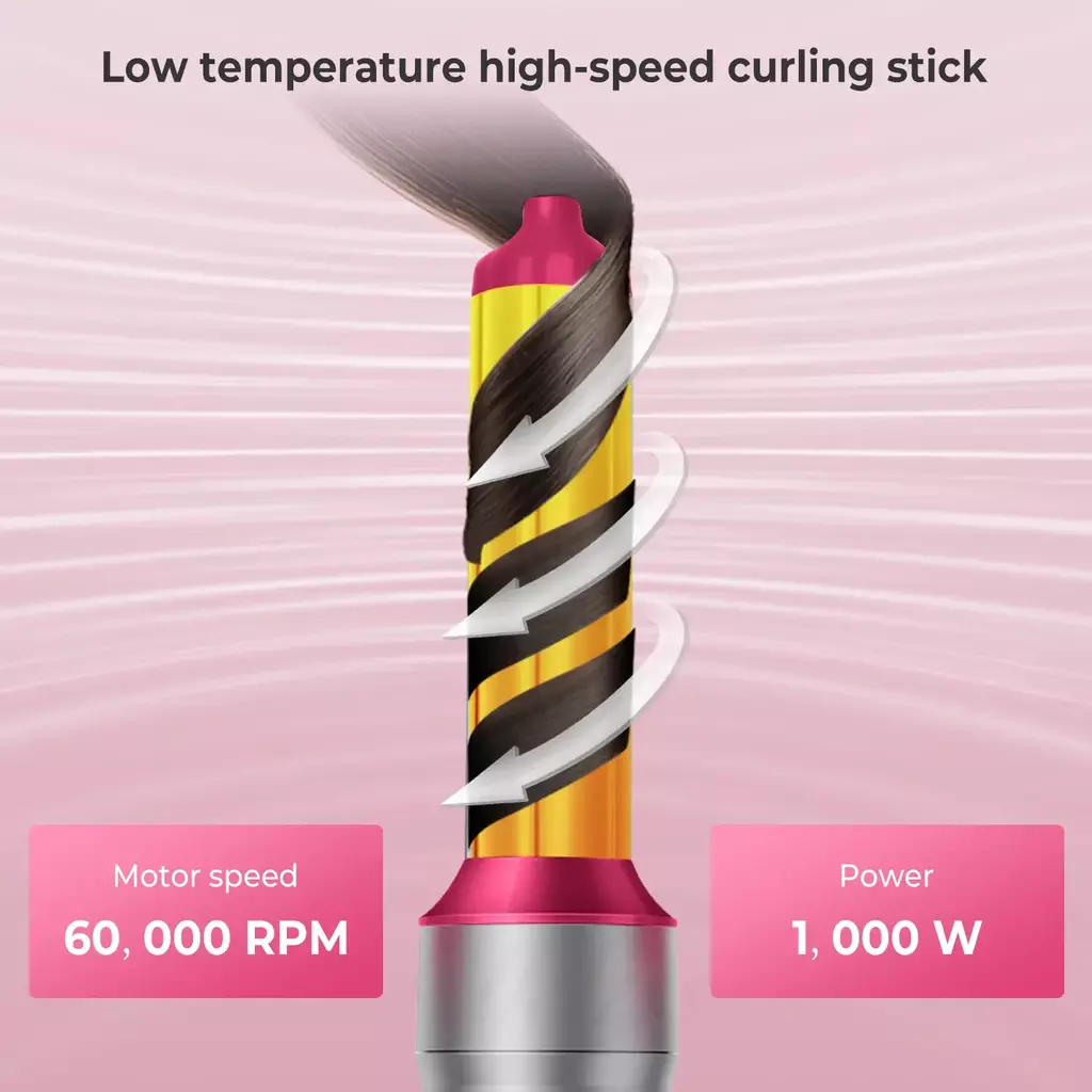 O 5 em 1 kit de escova de secador de cabelo para cor rosa e cor dourada é o nosso novo produto upgrated, com vento mais forte e ondulação melhor, a velocidade do vento aumentou de 25000rpm para 60000rpm, melhorou muito a velocidade de secagem e o efeito curling
